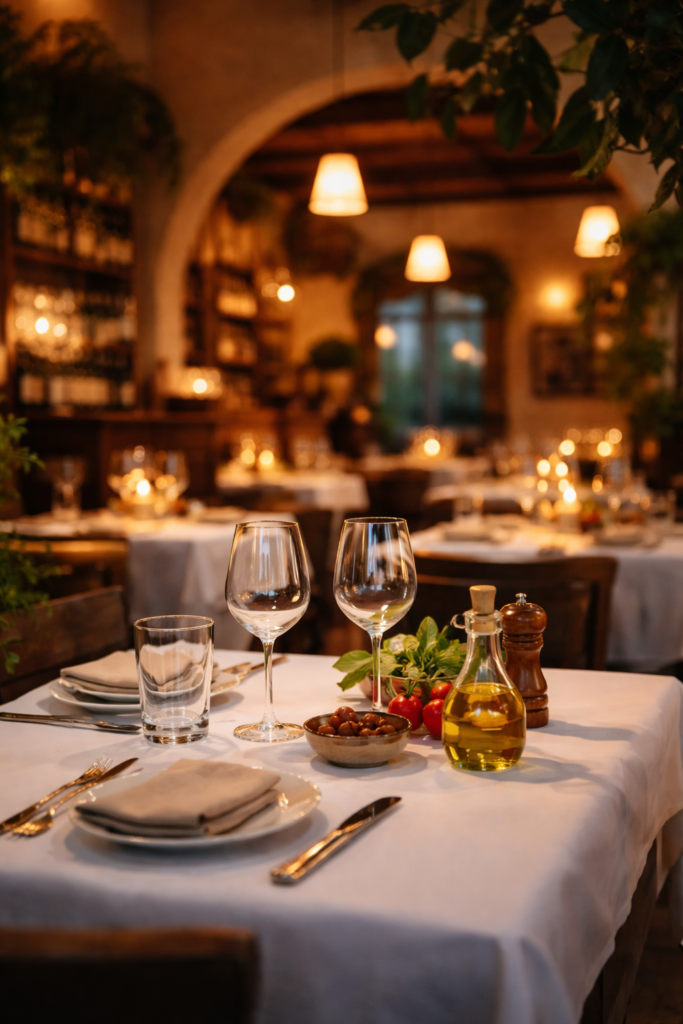 Unsere Küche arbeitet mit ausgewählten Zutaten wie frischem Fisch, hochwertigem Olivenöl, sonnengereiftem Gemüse und Pasta aus traditionellen Manufakturen. Im Mittelpunkt stehen Klarheit, Geschmack und Authentizität.